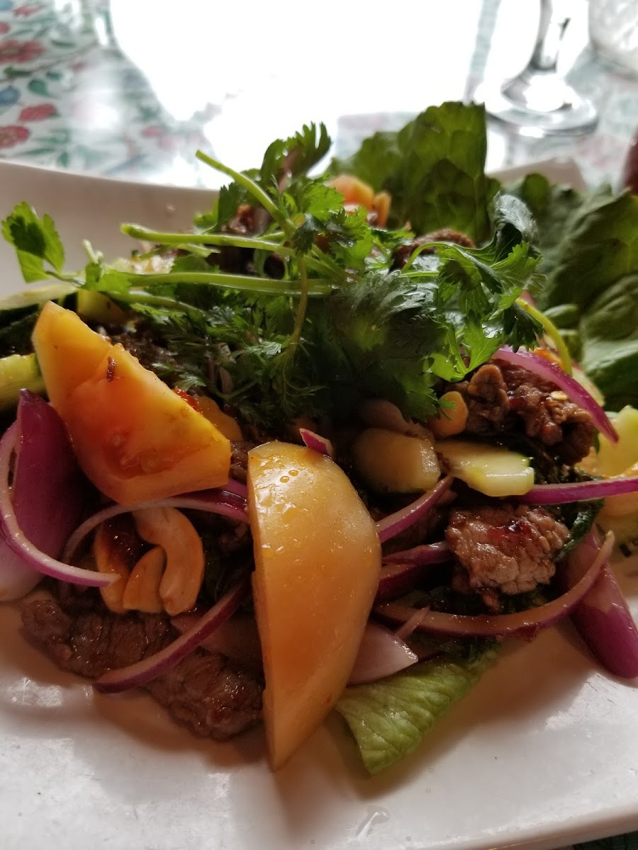 For those seeking a unique experience, try the Som Tum, a spicy green papaya salad that's both refreshing and fiery. It's a great choice for those who want to try something that's bursting with flavors typical of Thai street food. Additionally, the restaurant offers a range of vegetarian and vegan-friendly options, ensuring that everyone can enjoy the bold tastes of Thailand, no matter their dietary preferences.